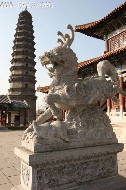 太子灵踪塔,位于原宝相寺的最北端,是宝相寺的标志性建筑。建于北宋政和年间,公元1112年建成,距今892年。 宝塔为八角砖塔,底层呈莲花状,整体雄伟壮观,巍峨挺拔,充分体现了宋代建筑风格,是我国古代劳动人民智慧的结晶,整个塔刹呈葫芦型,是由黄土烧制而成的,外面施黄色釉质,在阳光照耀下金光闪闪,所以民间俗称“黄金塔”。这座古朴典雅的佛塔,塔身全部用青砖砌成,呈八角形,塔高为45.5米,底座直径为10米,共13层,按照佛经讲,只有葬释迦牟尼佛骨和舍利的塔才是13层 ,这在佛教里是规格最高的。塔顶层东西南三角各有券门佛龛一座,龛内塑有佛像。塔北面有门,内有螺旋台阶可登塔顶。