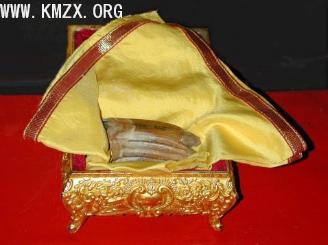 按佛经记载,佛祖 涅槃以后一共留下了四颗牙齿,中国一颗,斯里兰卡一颗,天上、海里各一颗。天上、海里是指方向,古人以北为天,以南为海,没有什么具体的地点。汶上这一佛骨和几百颗舍利是在1074年由赵匡胤的第五代玄孙赵世昌在嘉王宫内请过来的, 佛骨上面有两个字“京府”,证明它原在皇宫内珍藏了很多年。到了1112年由任城的左荣义、左荣世、中都束德儒三人迎葬到塔宫内 ,塔宫内石匣上刻有铭文。圣物长度为五点五厘米,宽三点三厘米,宋代科学家沈括在《梦溪笔谈》一书中讲到“佛牙瑞相有三:帝王将相、大德高僧拜之,则能长、生舍利、现佛光。”
