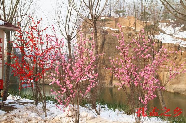 为迎接节日的到来,羊山景区提前将景区装点一新,火红的灯笼高高悬挂,特制的道旗排列整齐,盛开的花朵映着皑皑白雪更显得娇艳,为浪漫恋人准备的拱门、花海别有情趣。