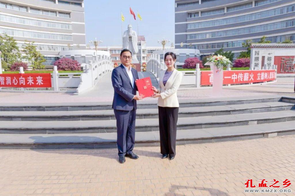 拜谒仪式后,曲阜市教体局党组书记、局长王庆新宣读了《关于聘请孔垂长先生为曲阜一中名誉校长的决定》。曲阜市副市长储艳丽向孔垂长先生颁发了名誉校长聘书。