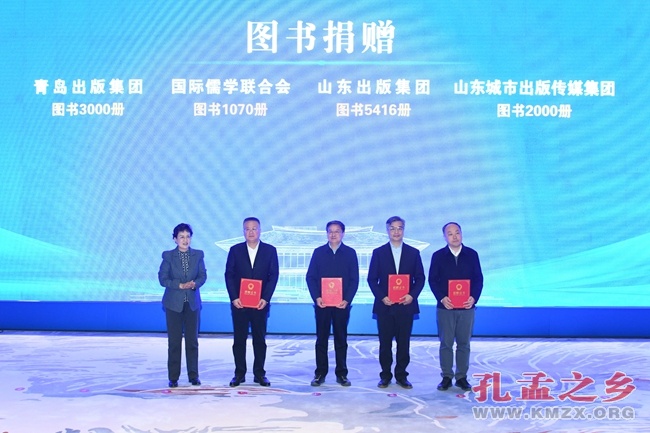 联合研究生院正式启用,受到了社会各界的广泛关注和大力支持。目前,已陆续收到尼山中华优秀传统文化联合研究生院共建院校、有关单位和各界人士捐赠的书籍26000余册,山东省图书馆、济宁市图书馆设立分馆,为联合研究生院高质量发展提供有力支撑。现场举行图书捐赠活动,孙尧、靳诺、白玉刚为捐赠单位代表及个人颁发捐赠证书。