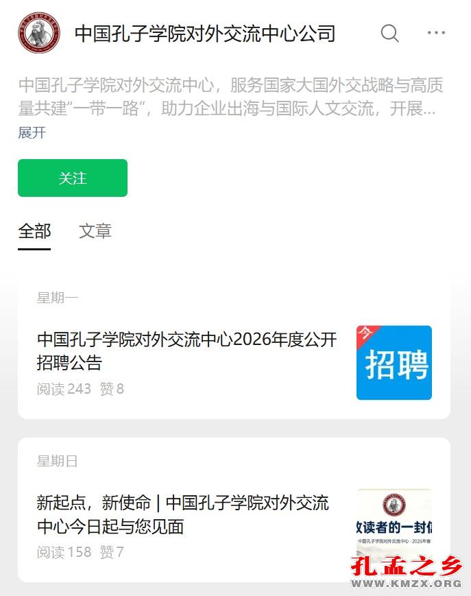 微信公众号“中国孔子学院对外交流中心公司”主页