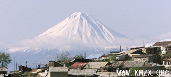 照片中是山顶覆盖积雪的亚拉拉特山。探险者称,他们在亚拉拉特山约3960米海拔处发现了诺亚方舟残骸