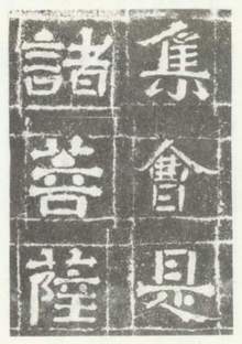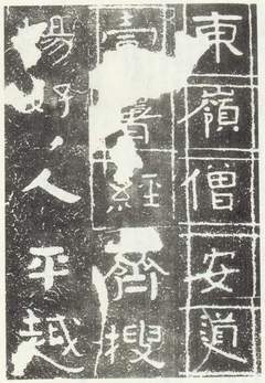 东平县司里山造像约八百尊,东面石壁原有大字刻经,后改造佛像,“波罗蜜经”摩崖残存字,仍可见三十余字,隶楷书,字径约三十厘米,面南大佛右下侧刻有“大齐皇建二年造”等字。白佛山亦为隶楷书,七十九字,为隋代开皇十年刻。还有泰山经石峪、汶上县水牛山、滕州陶山、邹城峄山、岗山、葛山等处。既无发现有摩崖刻经年代,又无书刻者题名,但从书体风格分析,均出安道一或其弟子之手。