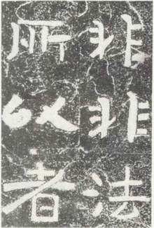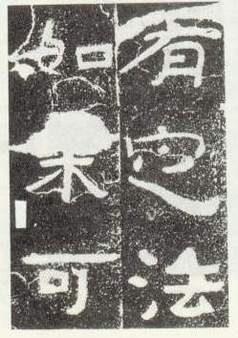 书法和刀法,是摩崖书艺术的巧妙结合。一个优秀的刻石能手,不仅能再现书法本身的风貌,而且能够创造性地改变和升华书法艺术本身。使它的点画、结体、风貌发生新变化。圆笔可以刻凿成方笔,圆转可以刻凿成方折,连笔可以刻为断笔,轻笔可以刻凿为重笔(图八)。经过刀法的加工修饰,使书法艺术成为摩崖书艺术的效果。欣赏起来别有一番风趣,称“金石味”。书法用笔多变,而刀法用刀也是风格多变的。如冲刀、切刀、直刀、曲刀、斜刀等,从效果上,可以看到的刀口有:型、V型、U型、 型、 型等。还有一些细微变化,就不细说了。因此,一般在书丹后,首先由凿刻能手先将书定的字进行“双钩”,然后再由一般众石匠分片凿刻。因刀不一样,进度有快有慢,又因时时需要拂去石屑,多有遗漏和多笔少画现象出现,字越小这类现象就越多。