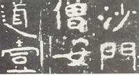 铁山摩崖刻经,位于邹城西北二里铁山公园内,俗称南岗,通高八十米,刻石高六十六点一米,宽十六点四米,总面积为一○八五平方米。阳面刻有《大集经·穿菩提品》和《石颂》大象元年(五七九)。隶楷书,刻经十七行,行六至六十一字不等,全文九三○字,尚能辨识者七七七字,字径四十至六○厘米不等。《石颂》位于经文右侧,有经主“匡哲”题名。“石颂”二字为篆书,字径九五×七五厘米,颂文十二行,行四十三至五十二字不等,字径二十二厘米,原刻六一四字,今存四九二字。下部为题名,原刻六十五字,今存四十五字。题名有:“任城郡功曹周,平阳县功曹大都维那,赵郡李巨敖,宁朔将军大都督任城郡守经主孙洽,东岭僧安道壹署经(见图二),齐搜扬好人平越将军周,任城郡主簿大都维那闾长篙”。以上除官方人士参助外,书经人即是安道壹。