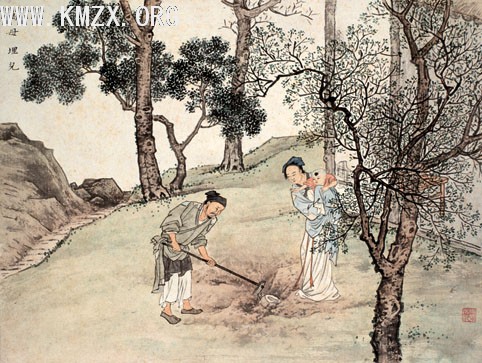 郭巨思供给,埋儿愿母存。黄金天所赐,光彩照寒门。
