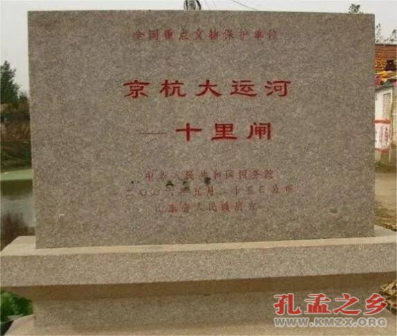 世界文化遗产中国大运河遗产点十里闸,又称南旺下闸、南旺北闸,位于运河南旺分水口北“五里”。闸名始于明成化年间,因距南旺分水口南侧的柳林闸“十里”而得名。明宪宗成化十七年(1481年),由管河郎中杨恭于南旺分水口北“五里”处建造。十里闸为单孔石质节制闸,呈束腰亚字形,横跨南北向河。由闸基、闸口、闸槽、迎水雁翅、分水雁翅、裹头、东西闸墩、绞关石、闸板等构成,金门宽一丈九尺、高二丈一尺六寸。十里闸是京杭大运河南旺分水枢纽的重要组成部分,汶水“七分朝天子”第一闸,与相邻闸协同启闭,调控汶水南北分流。